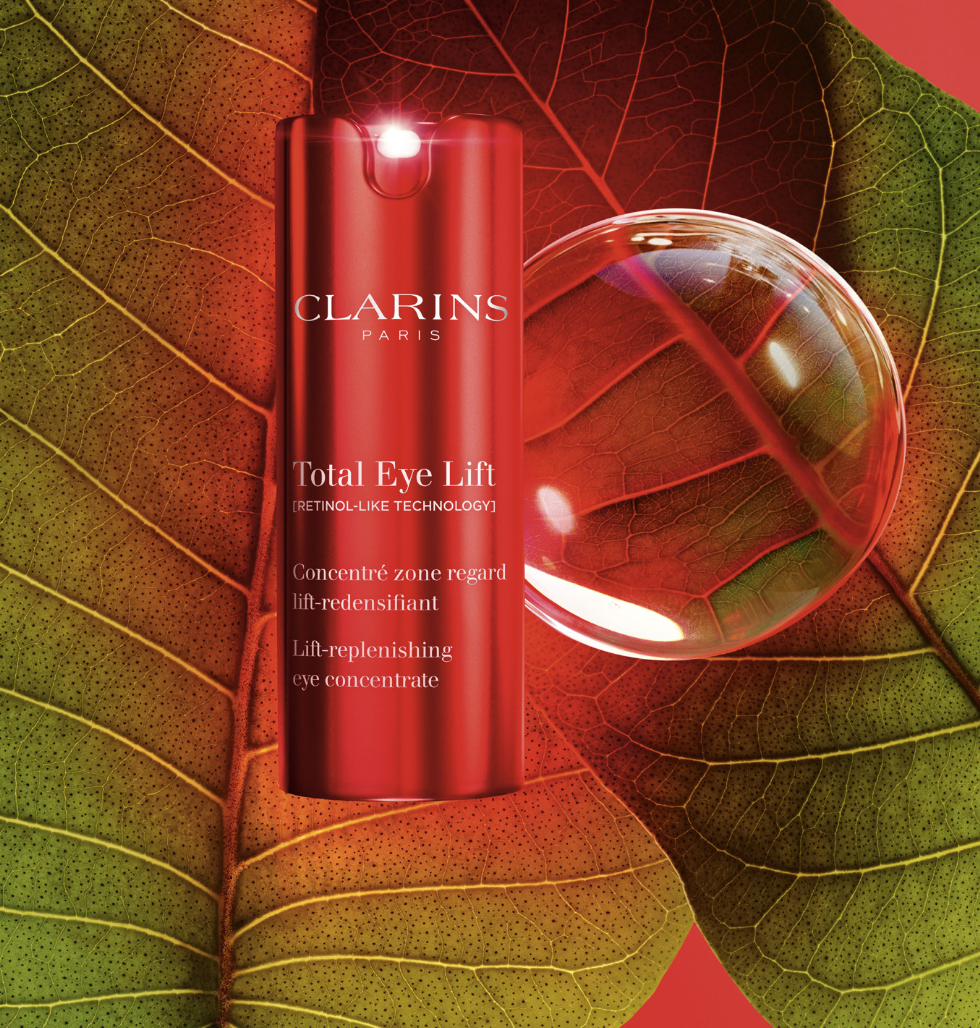 **By refilling the bottle once: comparison between 2 full Total Eye Lift bottles and 1 full bottle refilled once. Based on a single score, calculated using a lifecycle analysis. Source: clarins.com